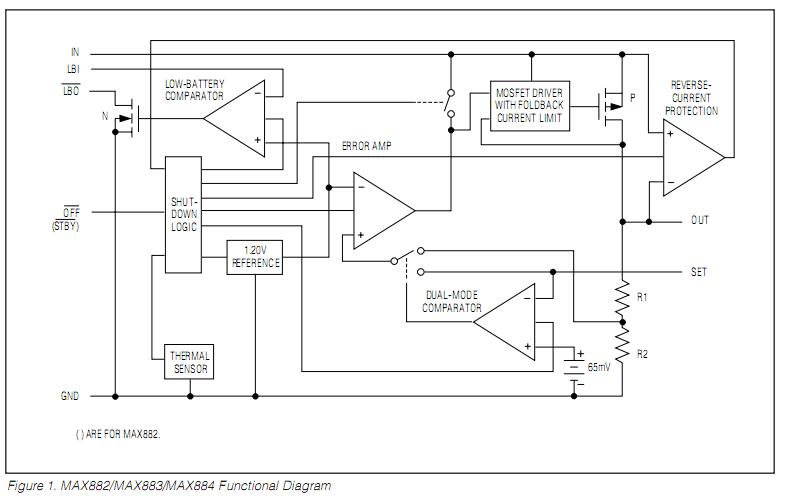 MAX882CSA features: (1)Foldback Current Limiting; (2)High-Power (1.5W) 8-Pin SO Package; (3)Dual Mode Operation: Fixed or Adjustable Output from 1.25V to 11V; (4)Large Input Range (2.7V to 11.5V); (5)Internal 1.1Ω p-Channel Pass Transistor Draws No Base Current; (6)Low 220mV Dropout Voltage at 200mA Output Current; (7)11μA (typ) Quiescent Current; (8)1μA (max) Shutdown Mode or 7μA (typ) Standby Mode; (9)Low-Battery Detection Comparator; (10)Reverse-Current Protection; (11)Thermal-Overload Protection.
